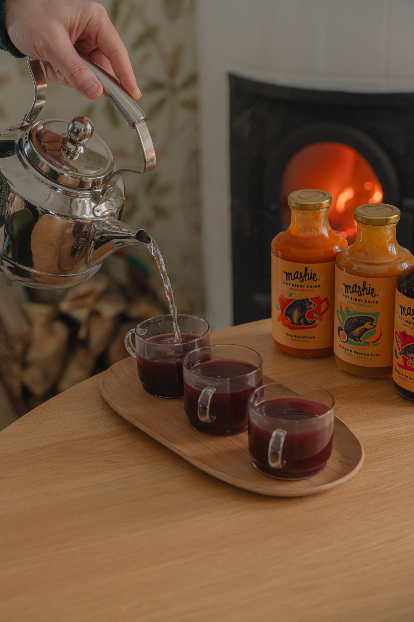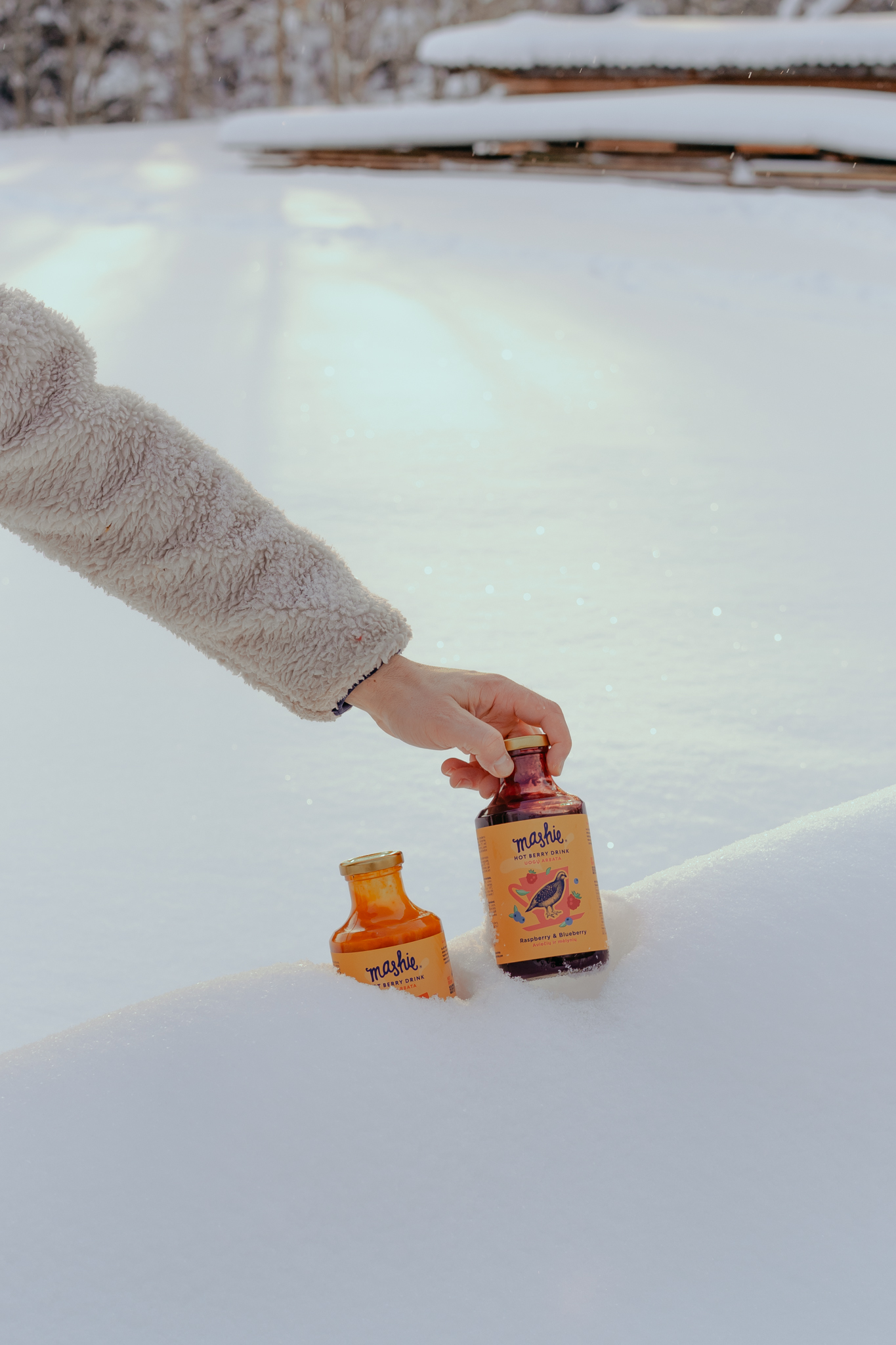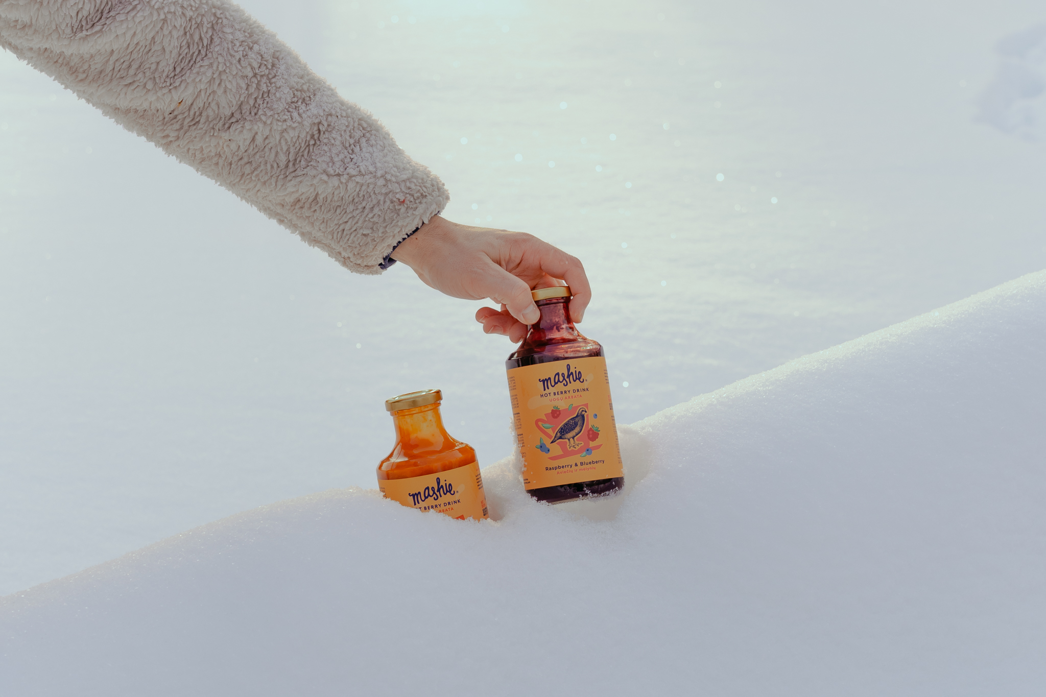 A lifestyle + product photoshoot for MASHIE — an all-natural mashed berry drink inspired by northern traditions. We captured the full winter ritual: warming up the drink in a cozy cabin, family time with tea, and playful moments outside in the snow with the kids (real, candid, and full of warmth). Think: comfort, nostalgia, and “I want this in my mug right now” energy 🫐🫖🧣